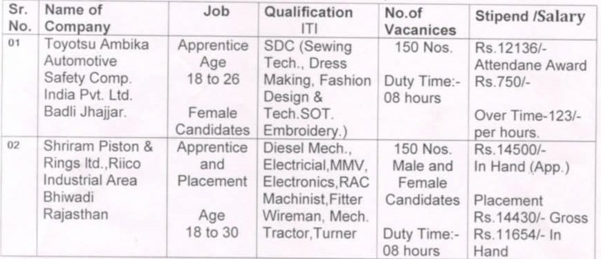 02 Company’s Campus Placement 2025 | Freshers | Trainee | ITI Pass | 300 Posts |